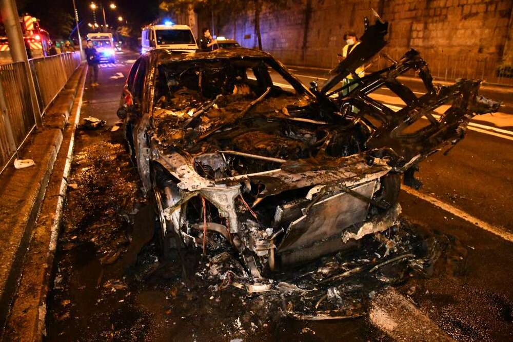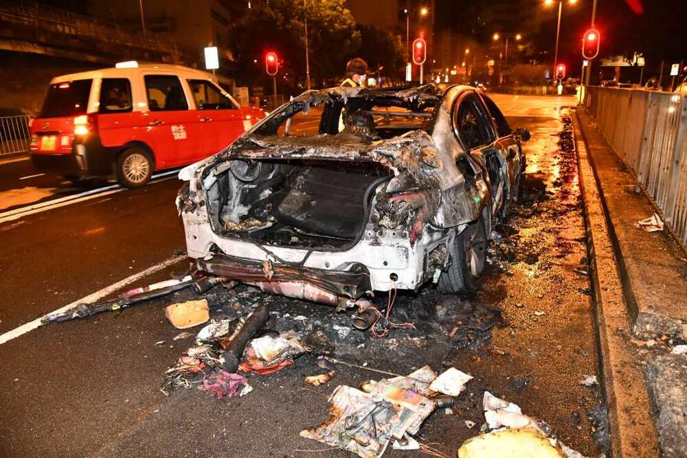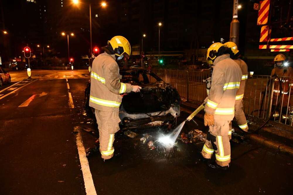 The driver was driving his car on Tai Po Road when it caught fire around 3am. The car engine first began emitting smoke before it burst into flames, explosions were also heard during the fire.