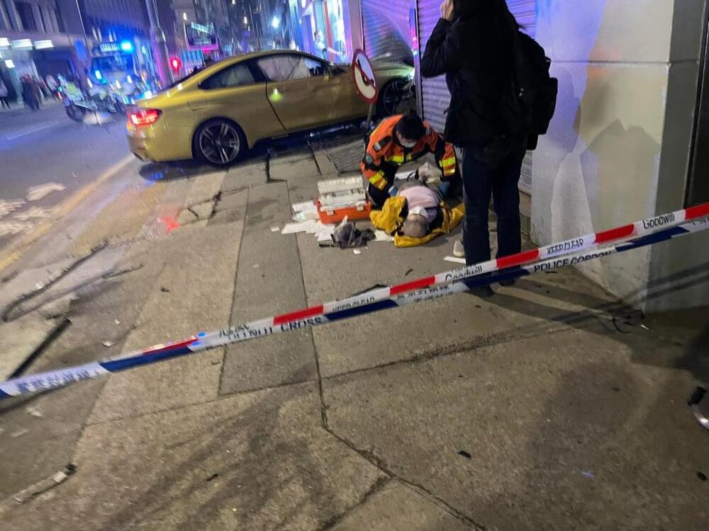 The incident took place at around 6pm tonight on Tai Yau Street. According to dashcam footage, a speeding yellow vehicle lost control and scraped the right-hand side of a taxi. It then ran onto the sidewalk and crashed into a shop located on the ground floor of Winning Center.