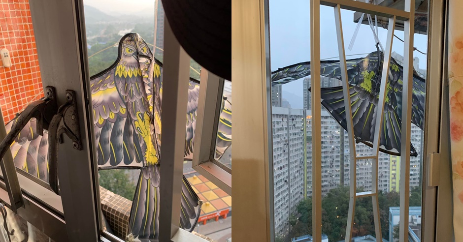 A photo shared by her saw a falcon-shaped kite being hung above her balcony, with Chan saying that the fake falcon has successfully scared away the pigeons.