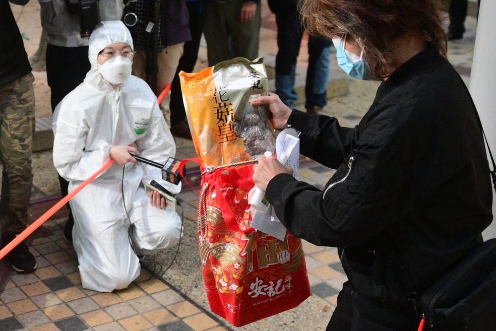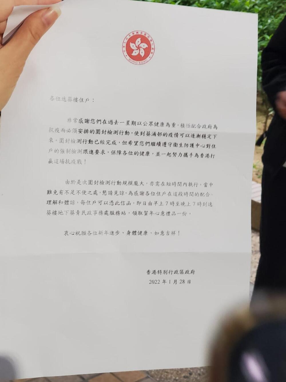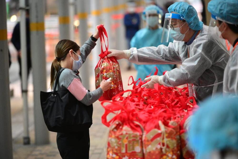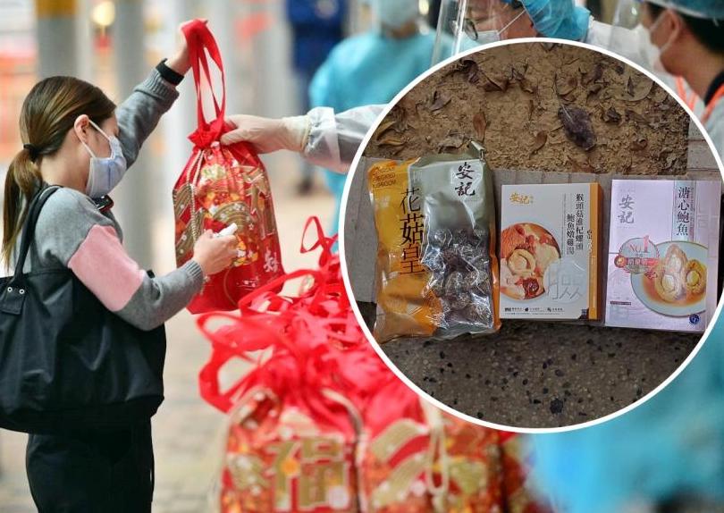 Authorities handed out letter of appreciation to residents this morning, where they could use it to exchange for a Lunar New Year goodies bag. Chinese sausages, dried mushrooms, and canned abalones were included in the goodies bag.