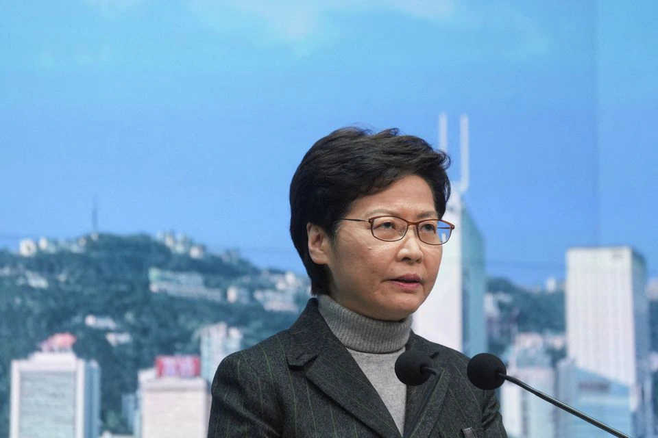 Hong Kong Chief Executive Carrie Lam attends a news conference in Hong Kong. (Reuters)