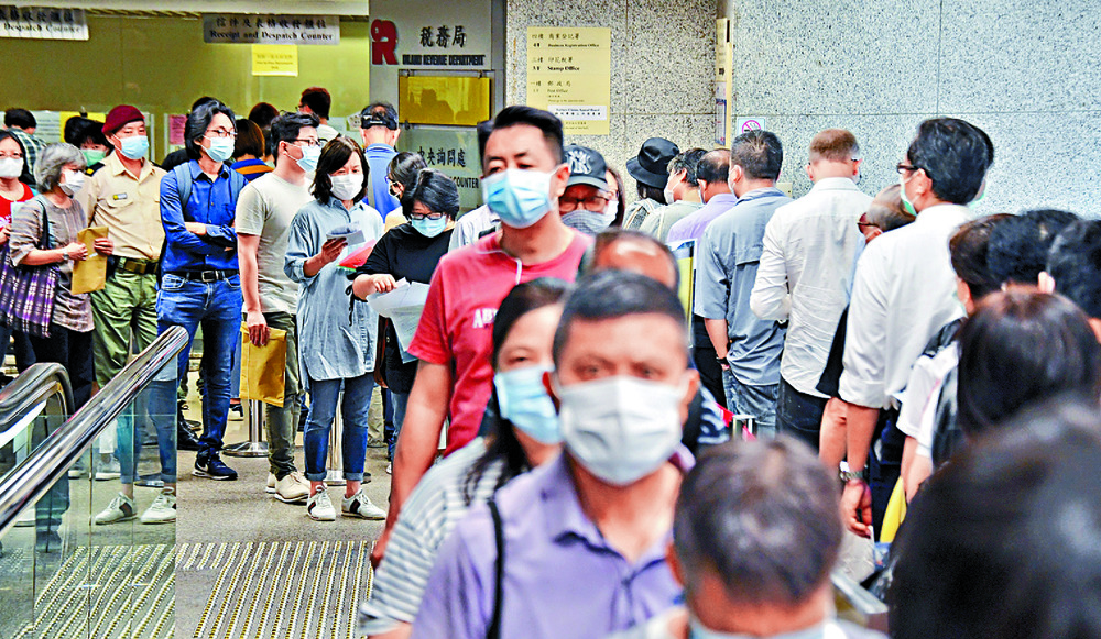 Large crowds also queued outside the Immigration Tower in Wan Chai.