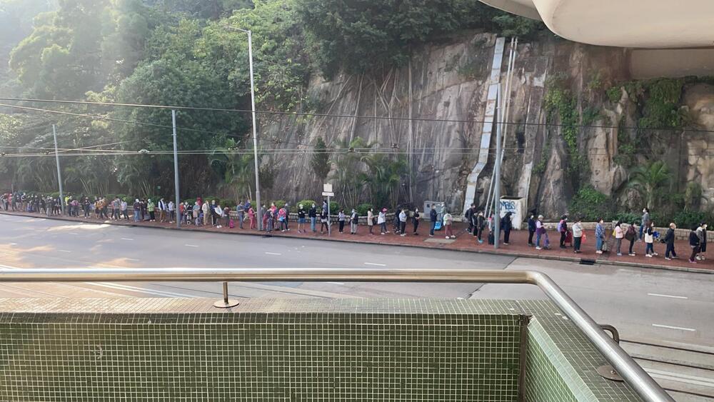 At the Tseung Kwan O Plaza outlet, citizens lined up inside the shopping mall's atrium before the supermarket opened. As for the Kornhill outlet, the queue even extended outdoors.
