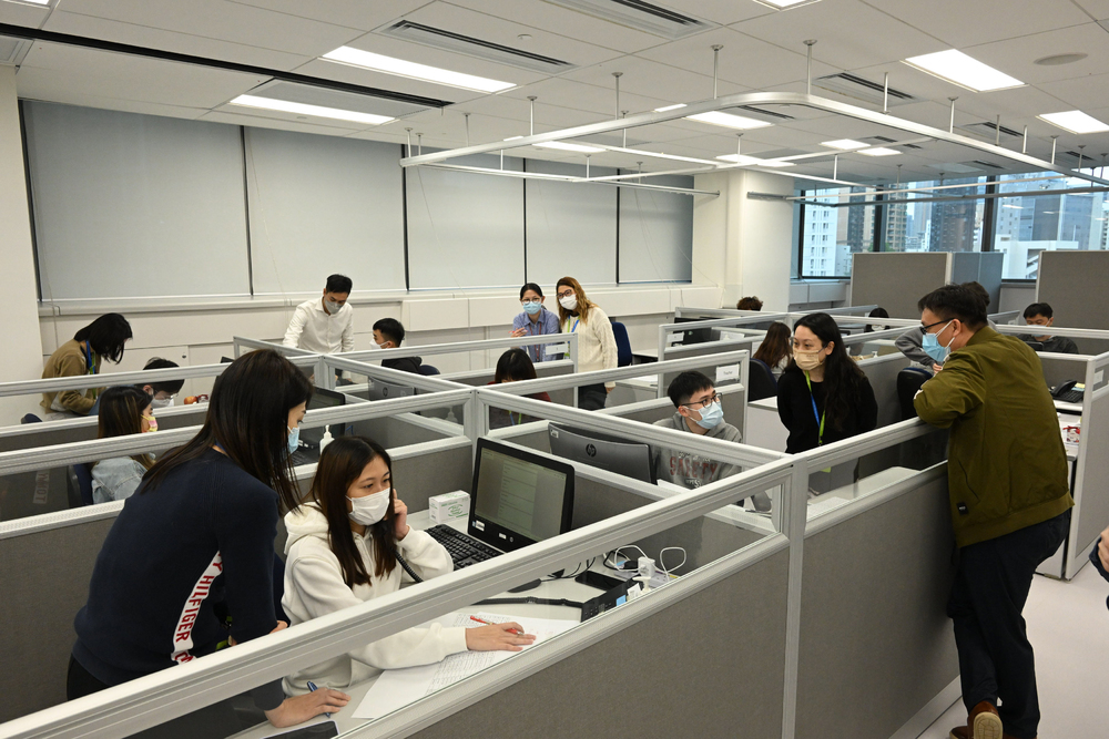 Located in the HKMU Jockey Club Institute of Healthcare, the call center runs from 8 am to 10 pm every day, handling calls to Hospital Authority Covid-19 hotline 1836 115 to support confirmed cases pending admission to isolation facilities.