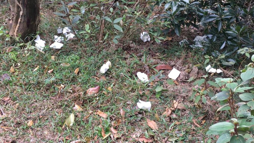 A project officer with the group, Antipas Poon Sing-chau, said many hikers have misunderstood that they could throw tissues in the countryside given the tissues could be decomposed by nature.