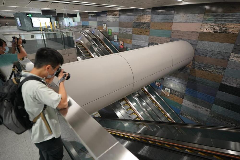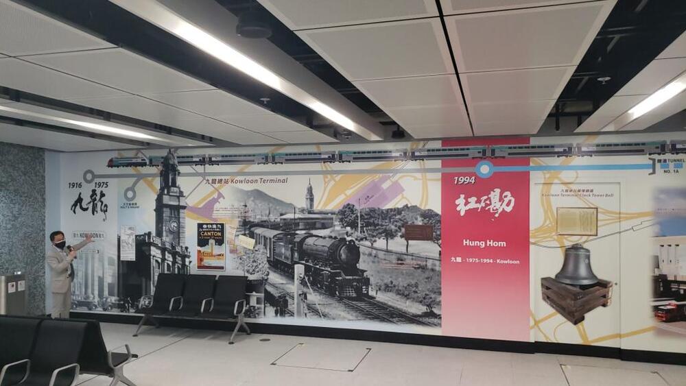 The new Exhibition Centre station of the East Rail Line cross-harbor extension will feature the casing of a WWII bomb and an art piece with 1,200 photos of the Victoria Harbour.