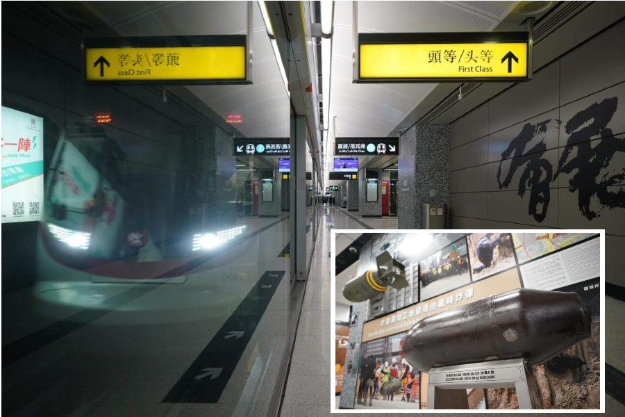Three bombs dropped during World War II were discovered during the construction of the station. The casing of one of the bombs will be displayed and even could be touched, through which passengers can learn more about the history of Wan Chai.
