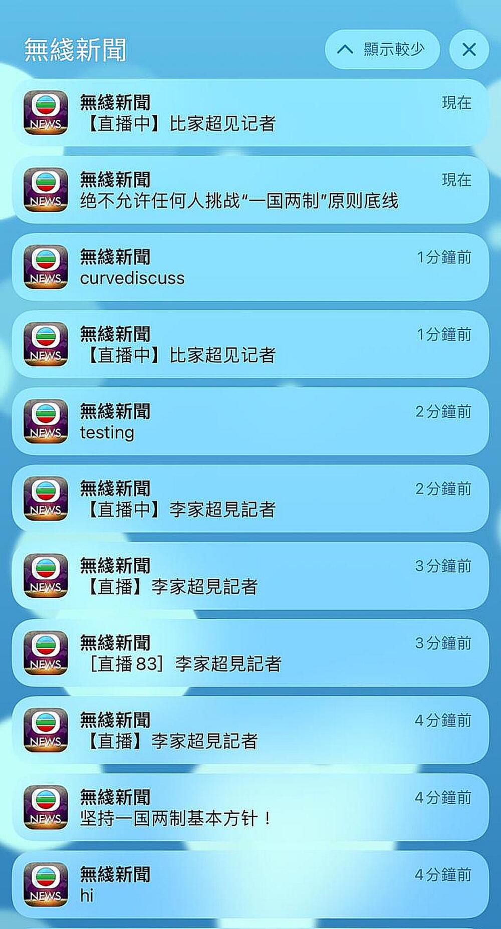 The broadcaster’s app sent out 23 push notifications within 20 minutes involving strange content like “hihi,” “testing,” “curvediscuss,” and “John Lee speaking to reporters” on Tuesday.