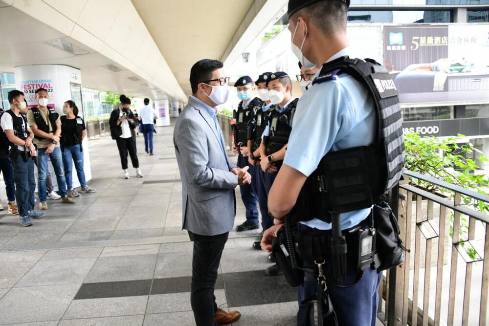 Tang also met the disciplined services officers on duty nearby and gave them words of encouragement.
