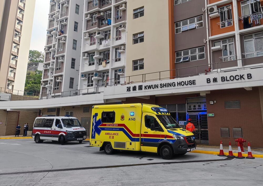 The tragedy occurred at Kwun Shing House, Kwun Tak Court in Ho Man Tin, and was reported to police by the son at 7.28am.