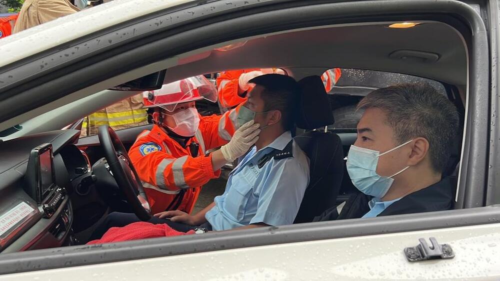At about 7am, four vehicles – a container truck, a private car, a cab and a police car - collided one after another on Chatham Road South towards Cross Harbour Tunnel.