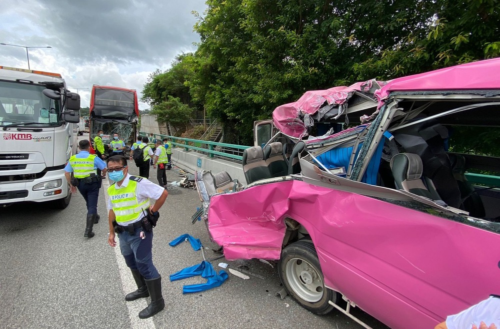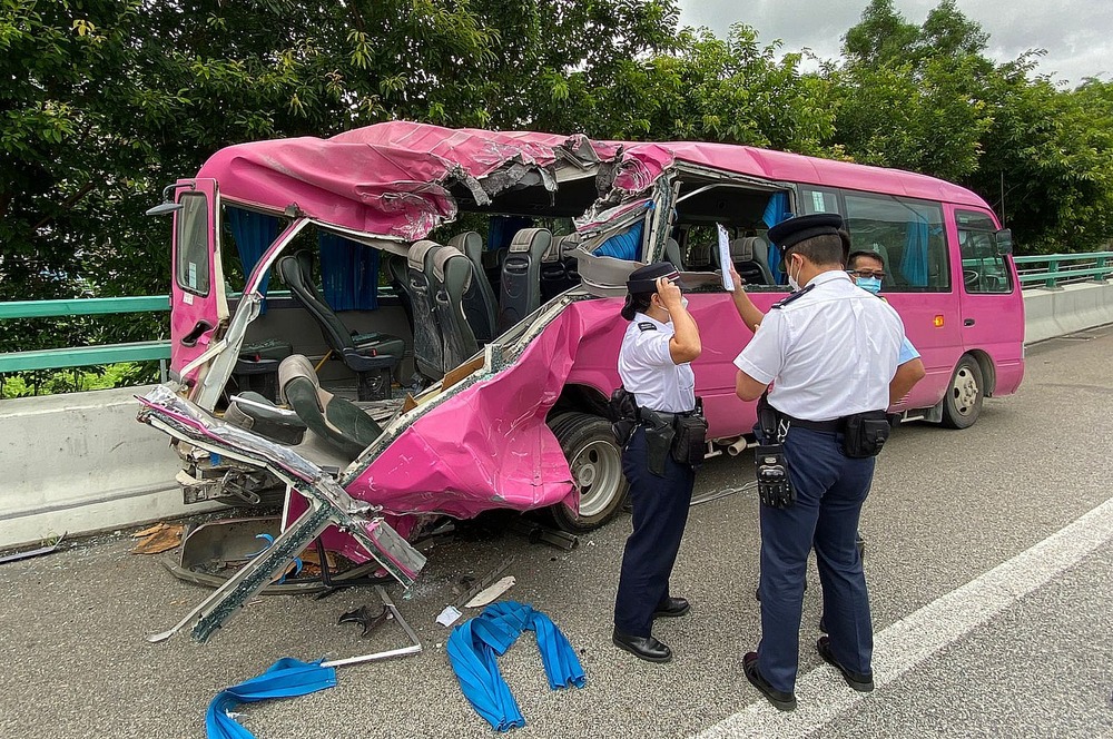It was said that the minivan got rear-ended by the double-decker when it was approaching the Shun Tak Fraternal Association Lee Kam Primary School.