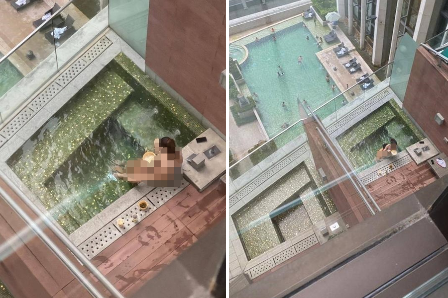 Two videos circulated online filmed the duo having fun and sexual acts in the water. It was suspected to be filmed by people living upstairs.