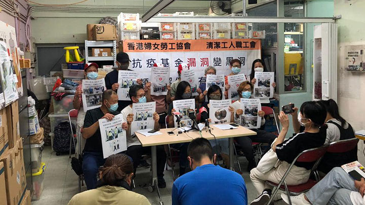 Around 300 workers including cleaners and security guards said they were not able to apply for the anti-epidemic subsidy, said the Cleaning Workers Union of the Hong Kong Women Workers’ Association.