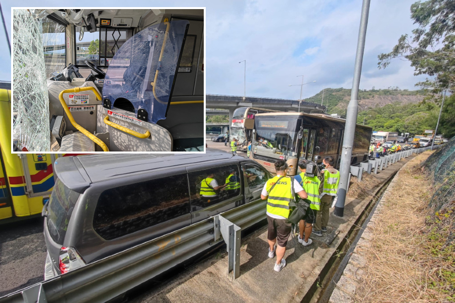 A double-deck bus then rammed into the single-deck bus. One private car in the middle lane was hit by a rear wheel that flew off the van.