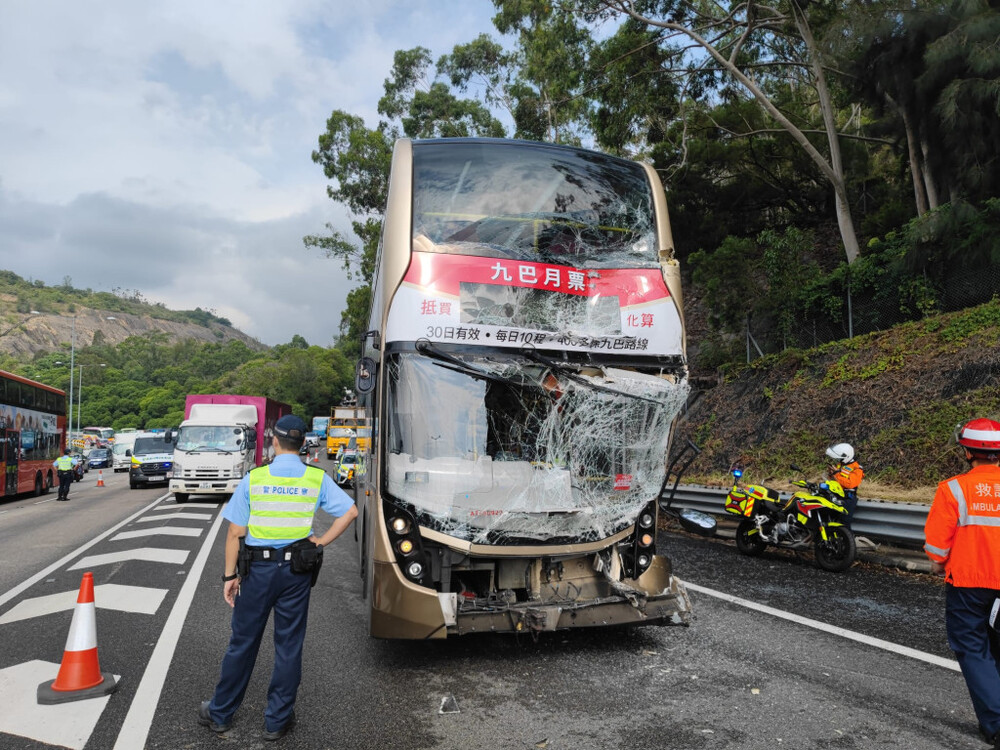 Four vehicles, including two buses, were involved in a multi-vehicle collision this morning on Tuen Mun Road's fast lane toward Kowloon, resulting in 13 people injured.