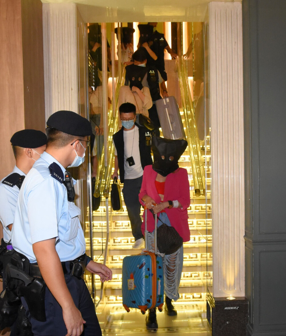 Hong Kong Island regional anti-triad unit and Wan Chai police district first sent plain-clothes officers to raid Fuji Building on Lockhart Road and arrested eight men and a woman aged 26 to 36 for breaching their conditions of stay.