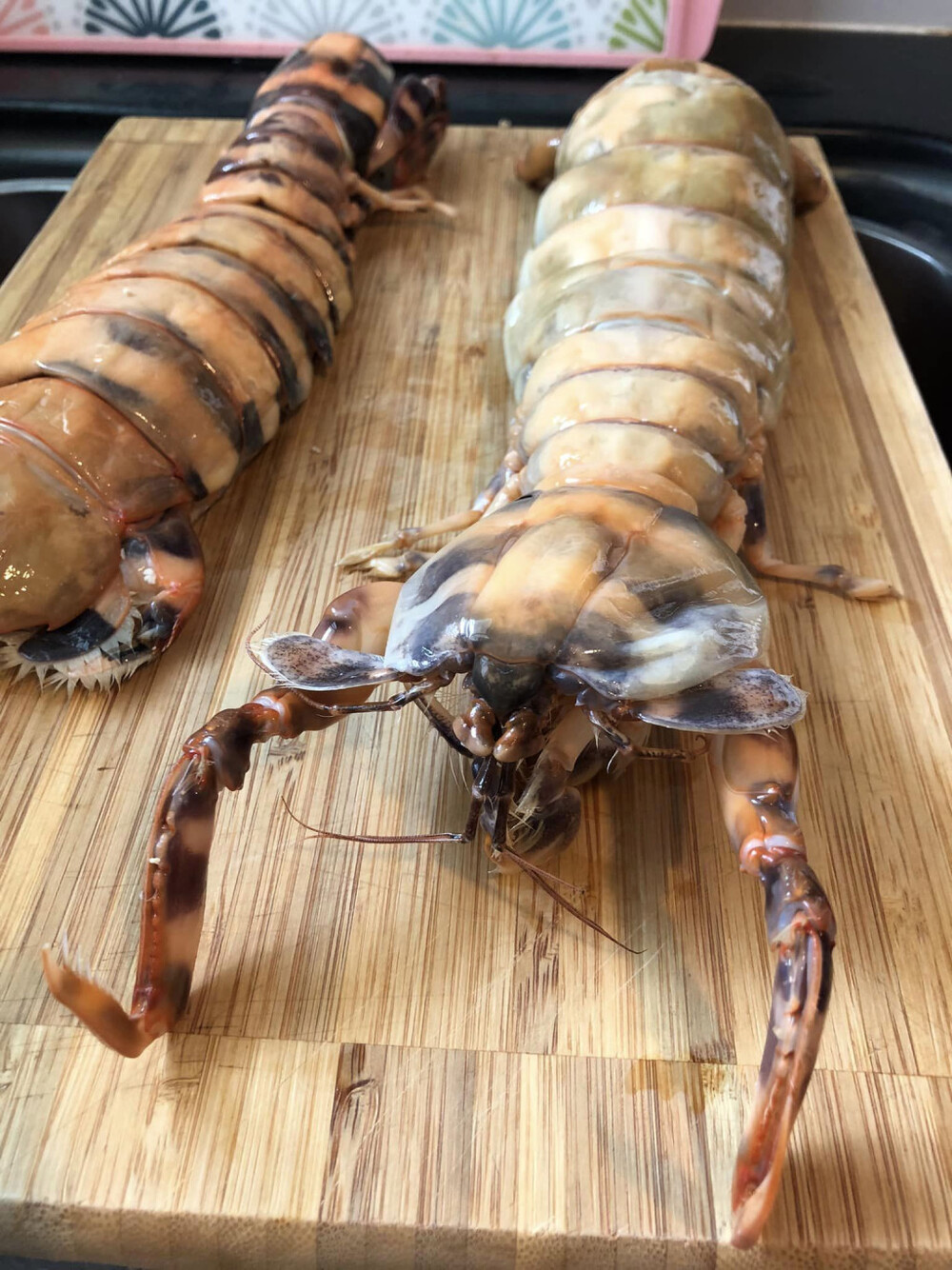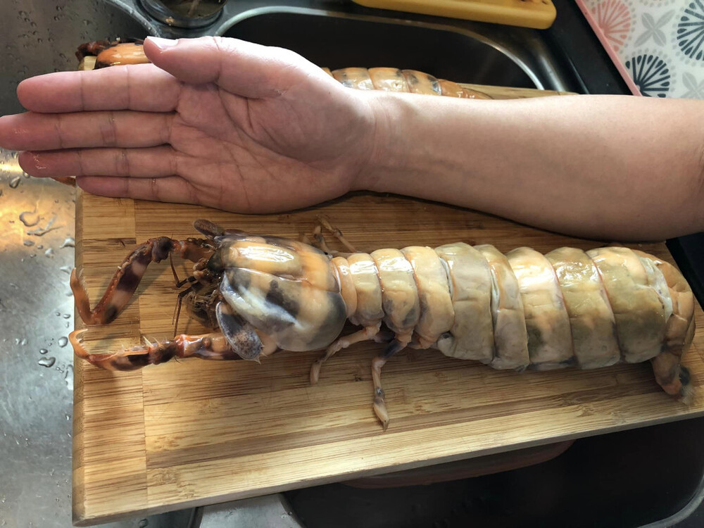 A netizen learned a valuable lesson on exercising caution when handling seafood after a gigantic mantis shrimp, as long as an adult's forearm, gave him a long scar when taking photos.
