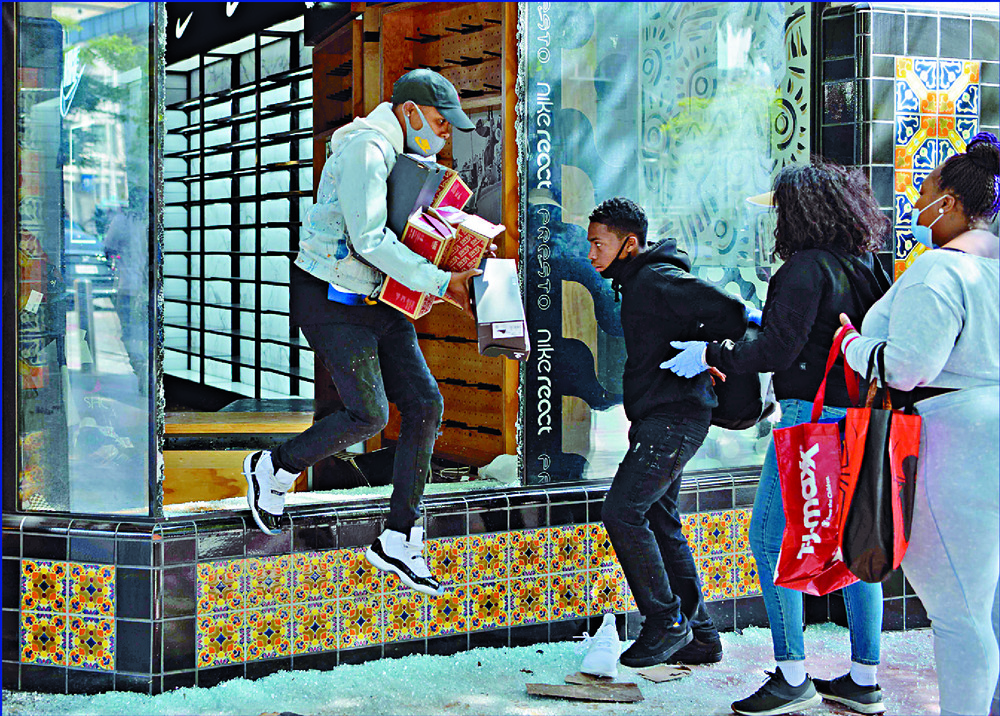 Images from television showed some young people running out of a Best Buy electronics store before being apprehended by the police.