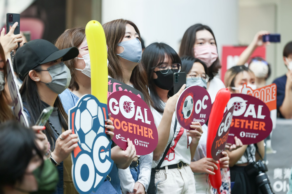 The event at Olympian City features two 430-inch large screens that offer bilingual commentary and an "OC x Now TV Experience Center" for visitors to play AR real-time game analysis.