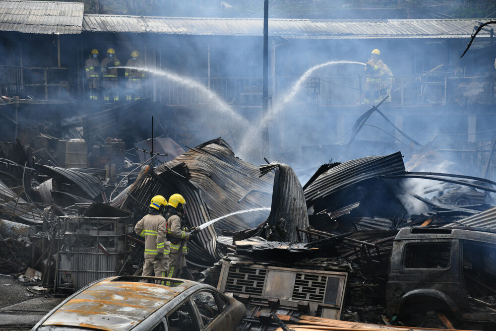 Firefighters said the operation was difficult as the fire covered a large area and was burning fiercely. The source of water was also located far away.