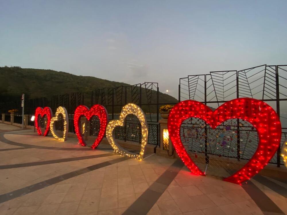The romantic mood has covered the hotel and Discovery Bay since the beginning of February, where the Love Lock Promenade at DB North Plaza and the D'Deck Waterfront Promenade have been decorated with two giant heart-shaped installations for lovebirds to make wishes and "lock" their love.