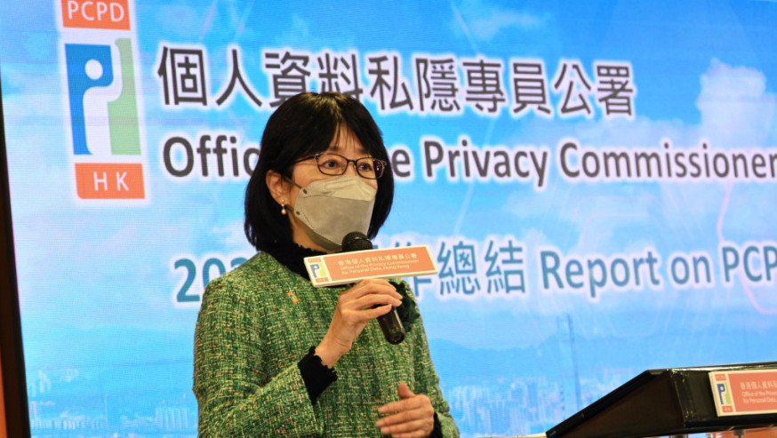 Privacy Commissioner for Personal Data Ada Chung Lai-ling speaks during a press conference on Thursday, February 9, 2023.