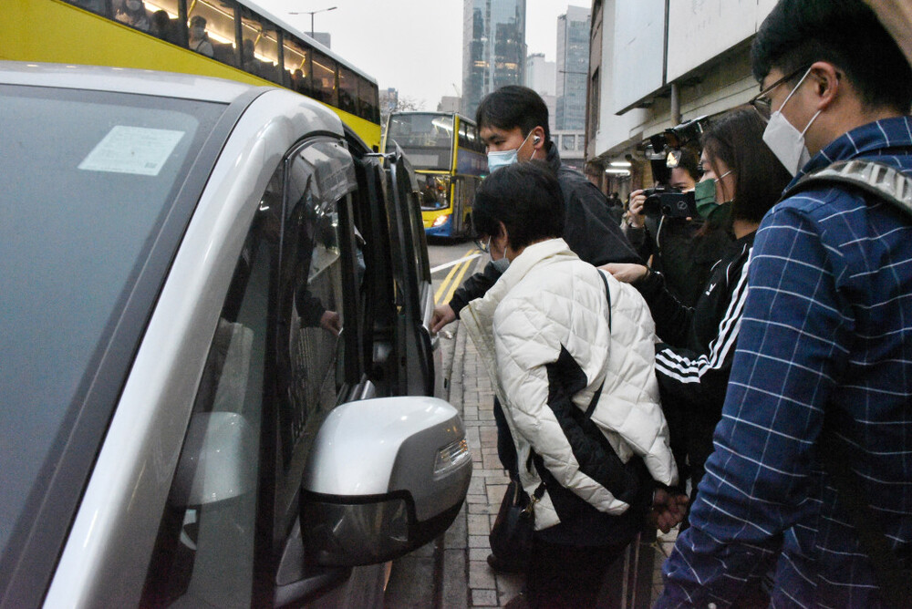 “I was scared by police as they grabbed my phone and arrested me the moment I finished visiting Lee and stepped out of [Stanley] Prison,” Tang told reporters as she left Wan Chai Police Station at around 1pm.