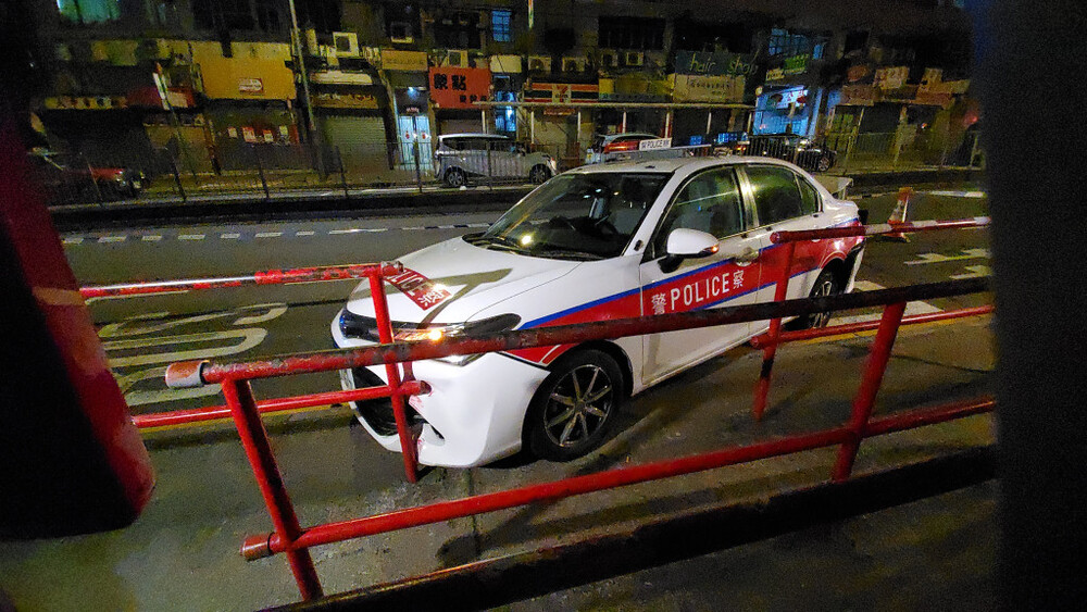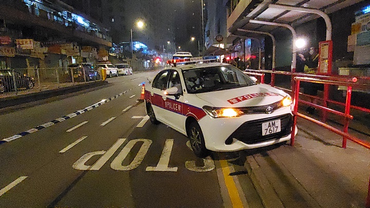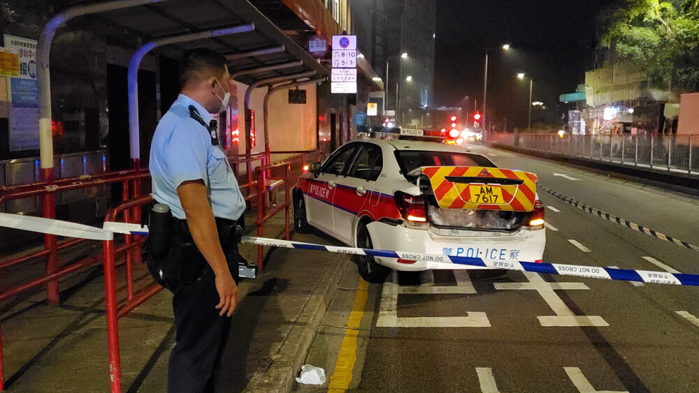 A police officer was sent to the hospital as he failed to dodge a police vehicle crashed by a driver who was caught failing to settle traffic fines in Kwai Chung in the early hours of Saturday.