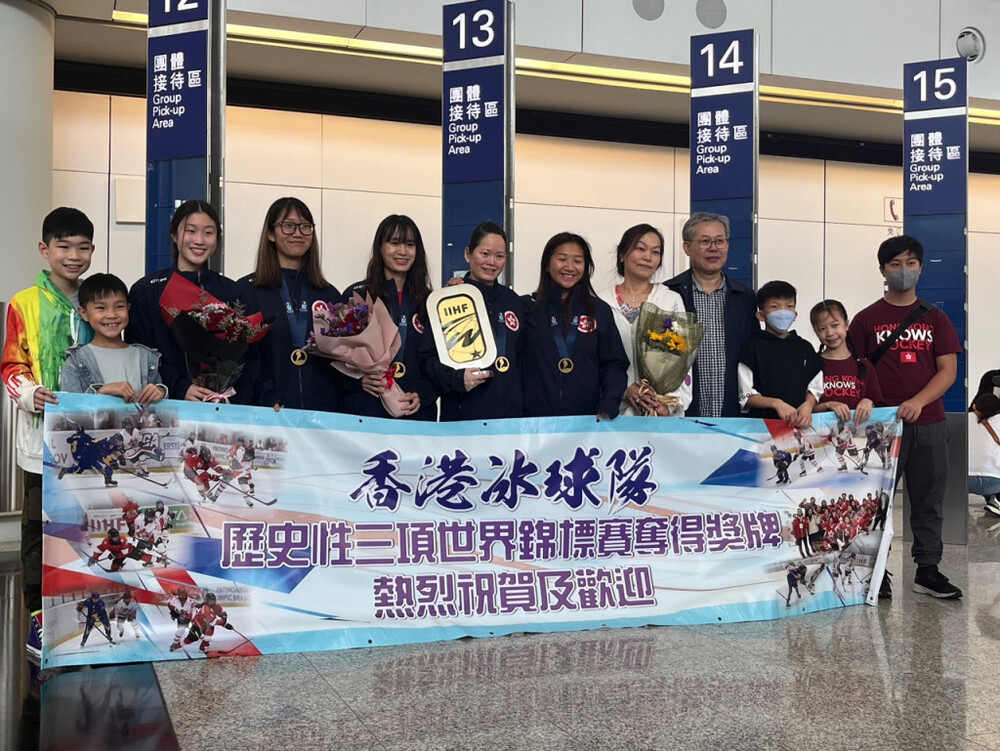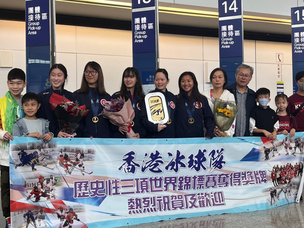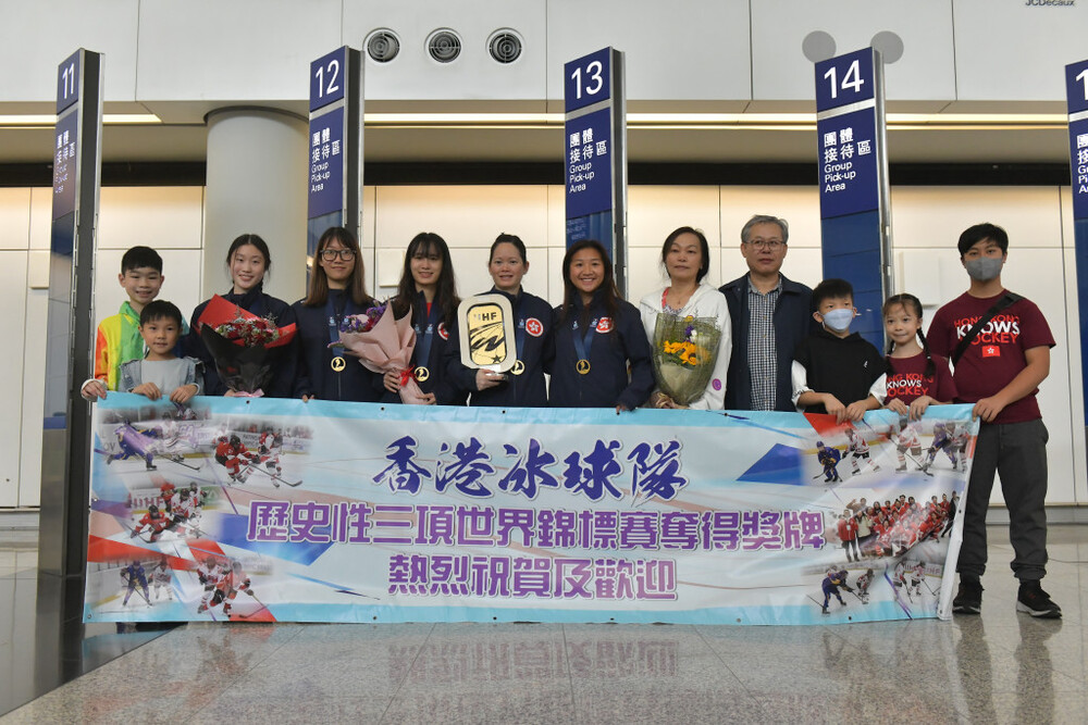 Hong Kong women’s ice hockey team received overwhelming support and welcome at the airport on Tuesday as they returned to the SAR from Romania after having crowned champion for the first time in the group A event of the Ice Hockey Women's World Championship Division III.