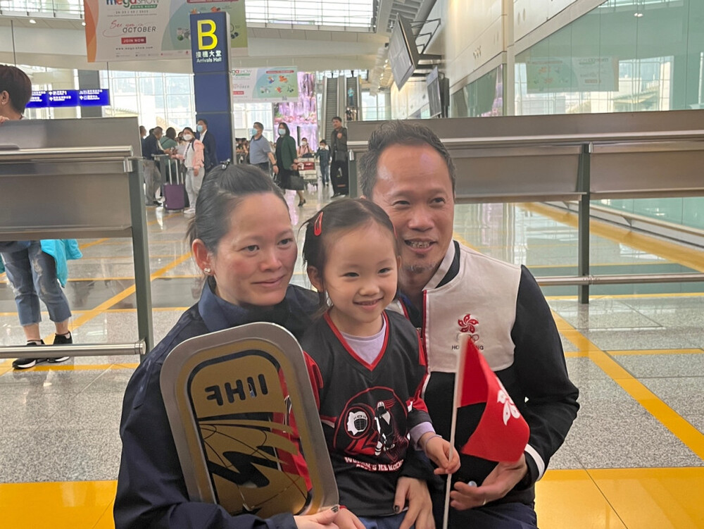 The team’s captain Adrienne Li was welcomed by her husband and five-year-old daughter Kayla. Her husband called on the government to provide the ice hockey sector with more support and resources following this outstanding achievement by the women’s team.