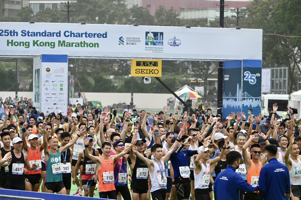 The 25th Standard Chartered Hong Kong Marathon held on February 12 saw a total of 34,783 runners at the start, with the overall attendance rate achieving a record high of 94 percent.