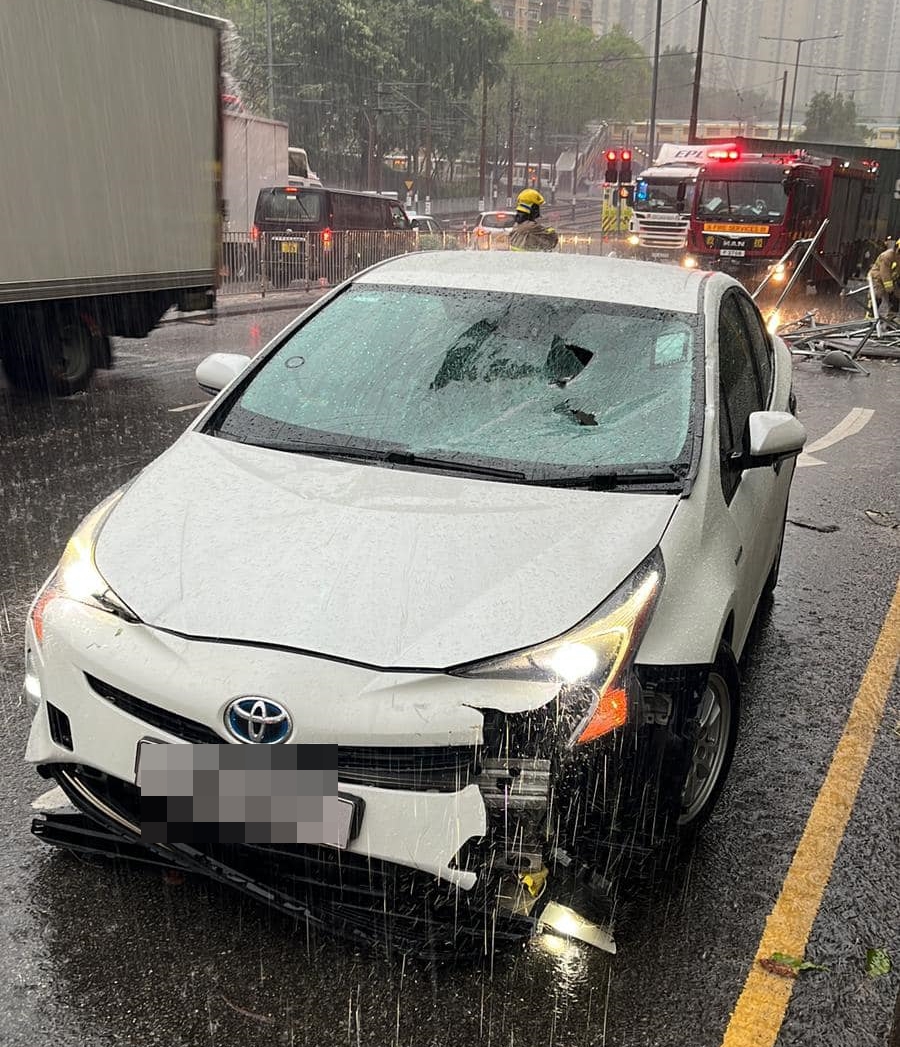A falling solar panel crushed a vehicle driving along Tsing Wun Road in Tuen Mun on Wednesday afternoon, with the driver luckily escaping the freak event uninjured.
