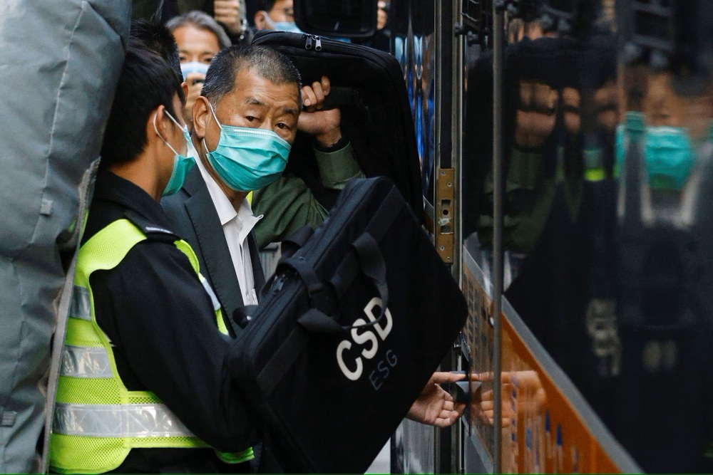 Media tycoon Jimmy Lai, founder of Apple Daily, looks on as he leaves the Court of Final Appeal by prison van, in Hong Kong. (Reuters)