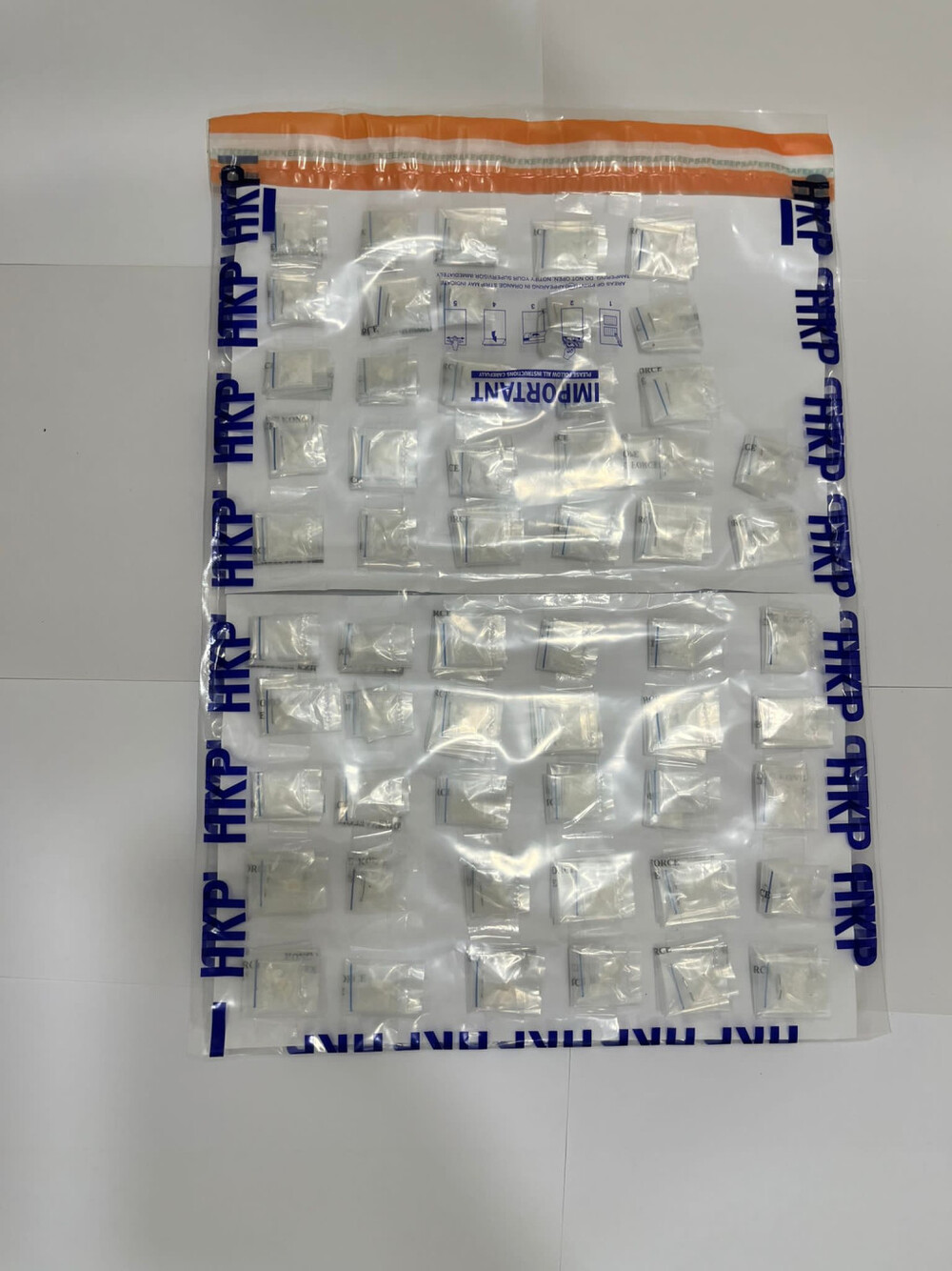 Police unveiled the alleged drug trafficking case on Friday night after they spotted an illegally parked vehicle outside a hotel on Wai Yip Street in Kwun Tong.