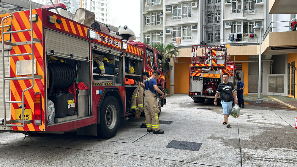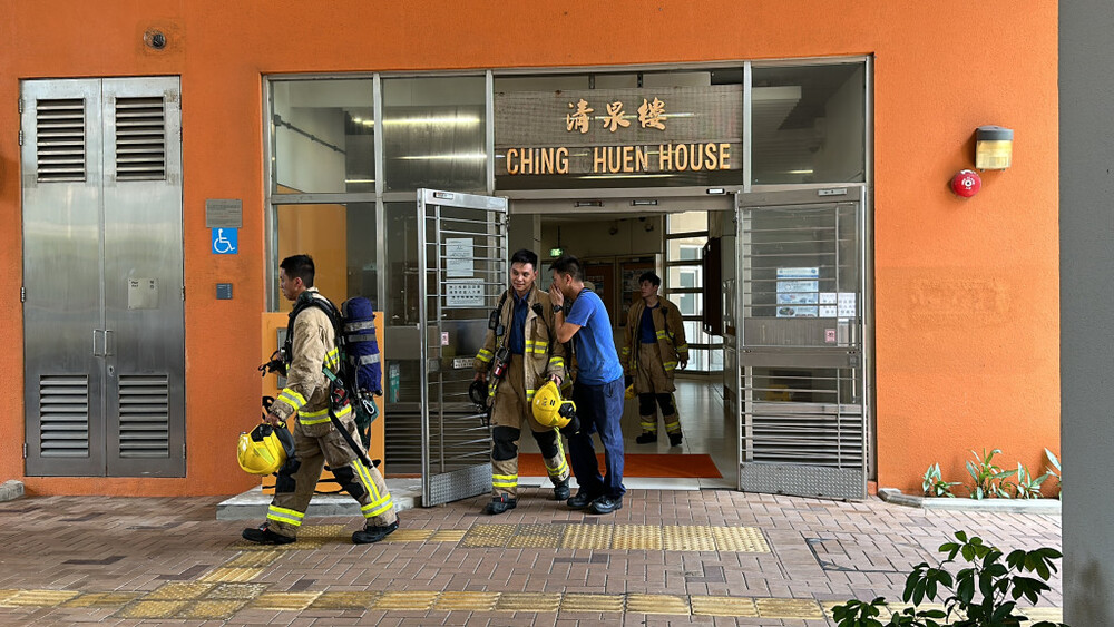 The fire was first reported to firefighters at around 9.51 am today by a security guard who spotted smoke billowing out of the flat at Ching Chuen House.
