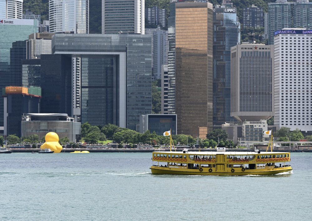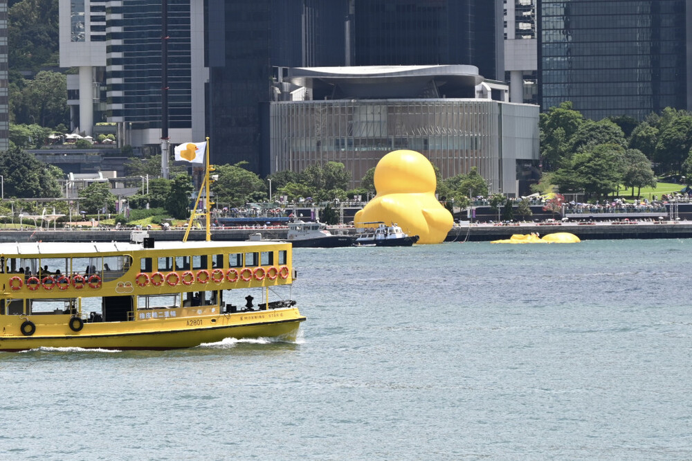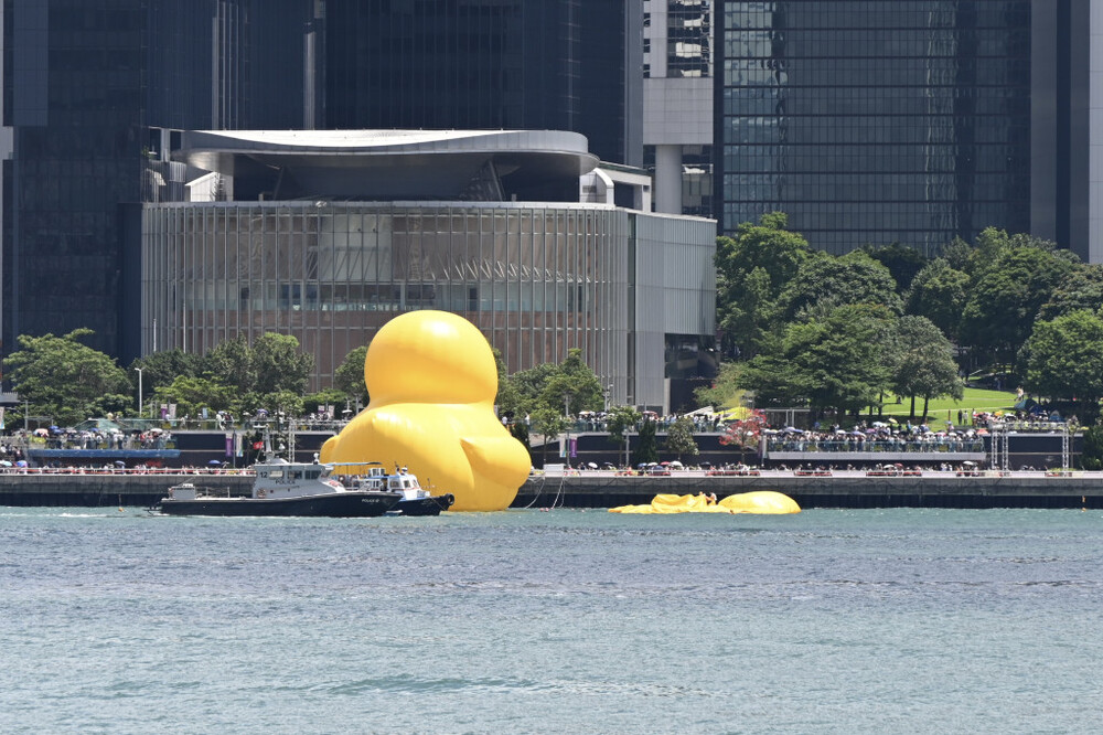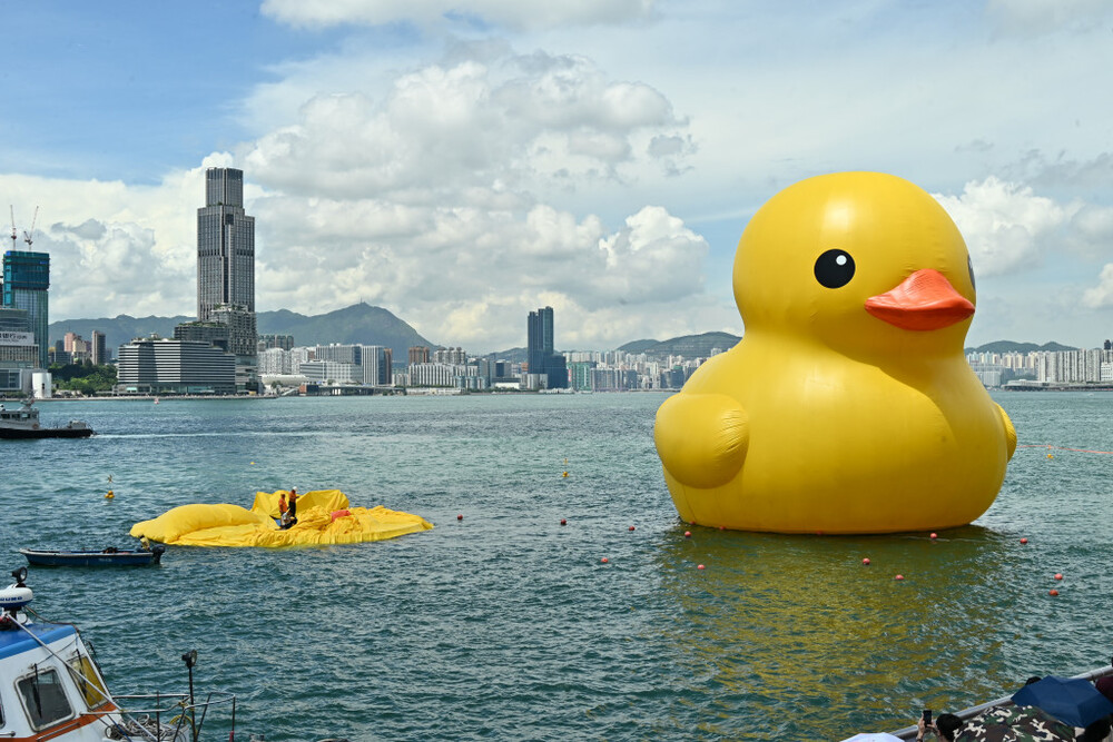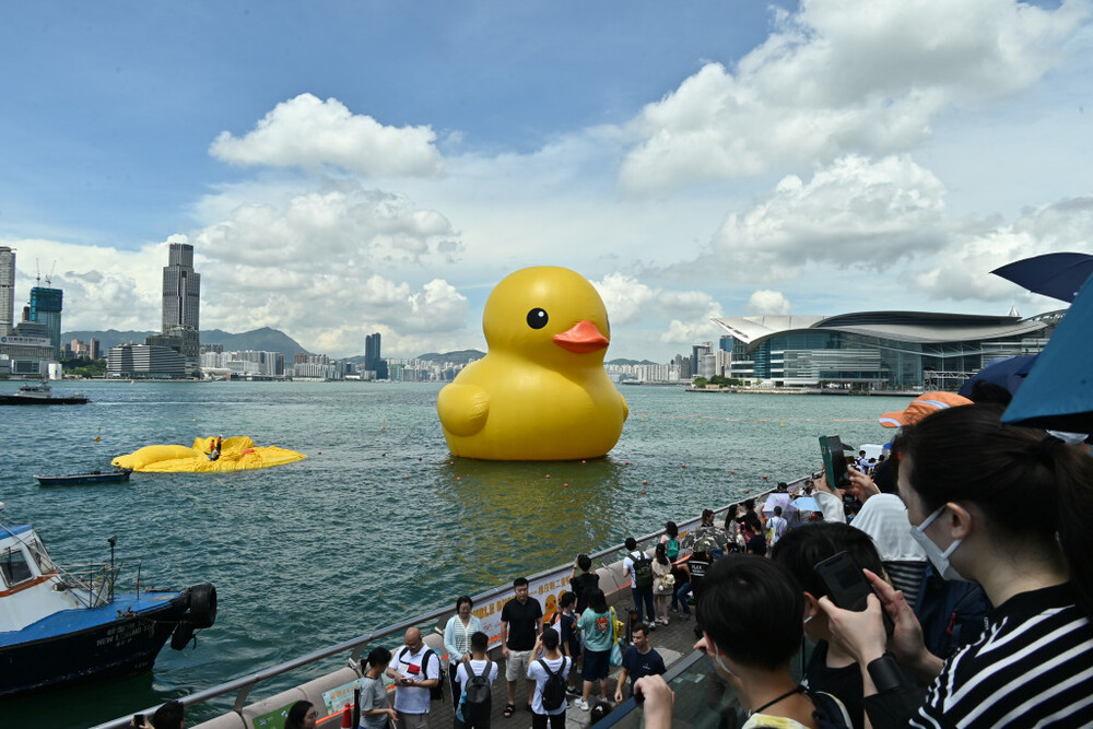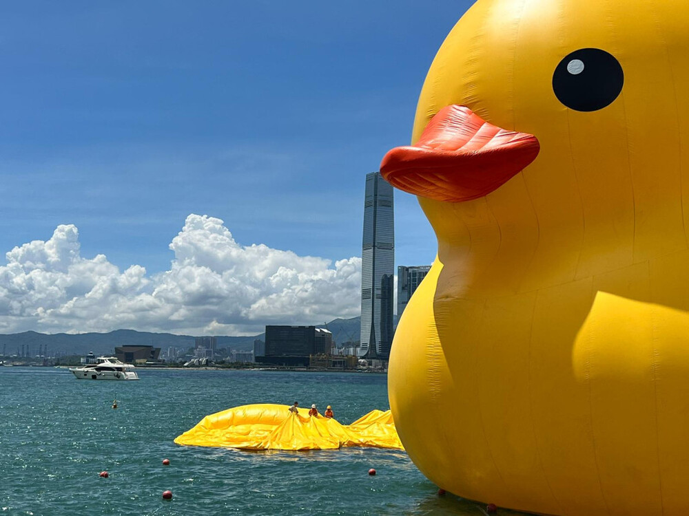 As the gigantic yellow Rubber Duck created by Dutch artist Florentijn Hofman returned to Hong Kong after ten years with a friend this time, one of them unluckily became deflated and collapsed in Victoria Harbour on Saturday afternoon.