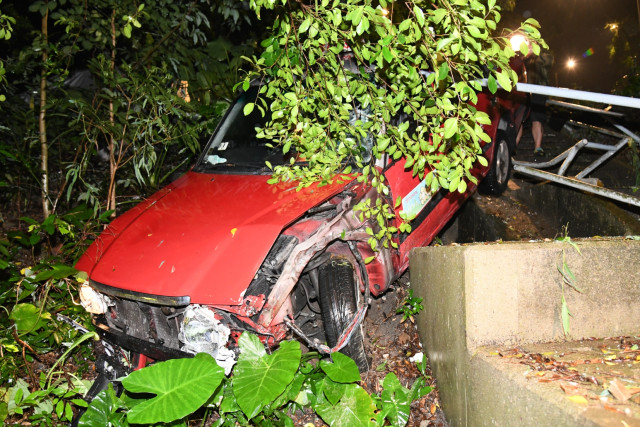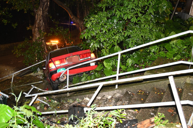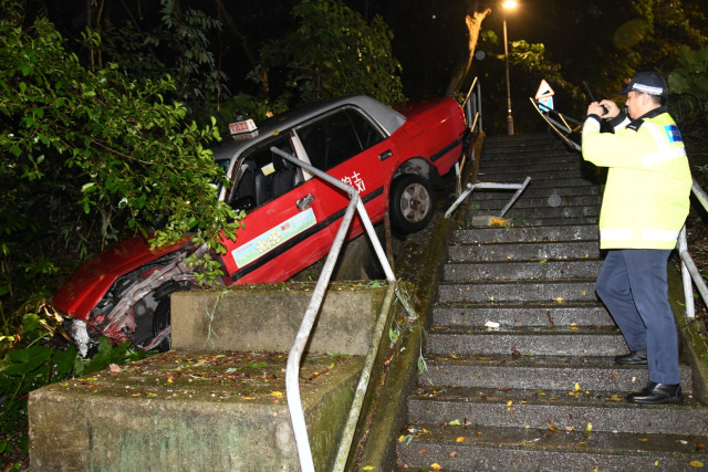The accident happened around 11 pm yesterday when the taxi was traveling along Yee Wai Path after dropping off a passenger. The taxi suddenly lost control when it reached the Shing Mun Lane junction and crashed into the curb railing.
