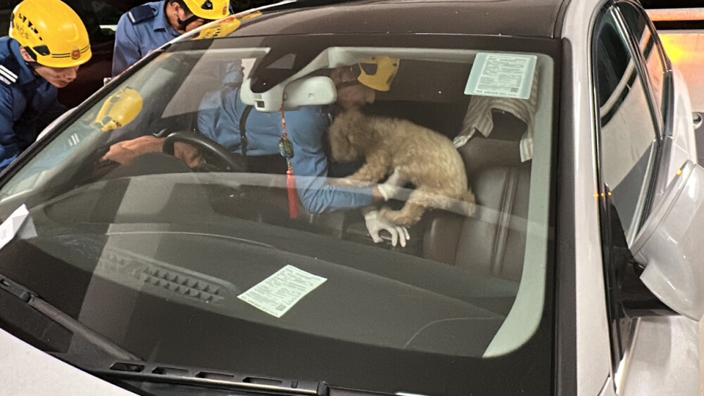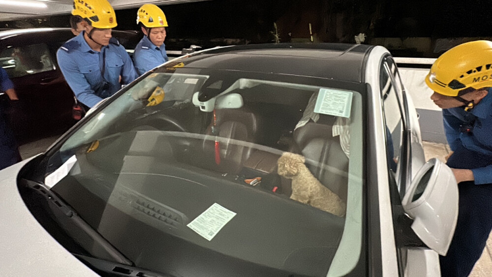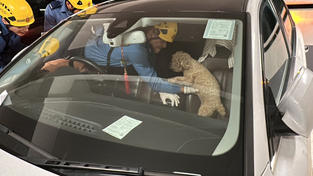 It is understood that the poodle, aged about three to four, is a male and in good health. According to security camera footage, the car entered the car park at about 9 pm, and it was estimated that the dog had been trapped for about three hours.