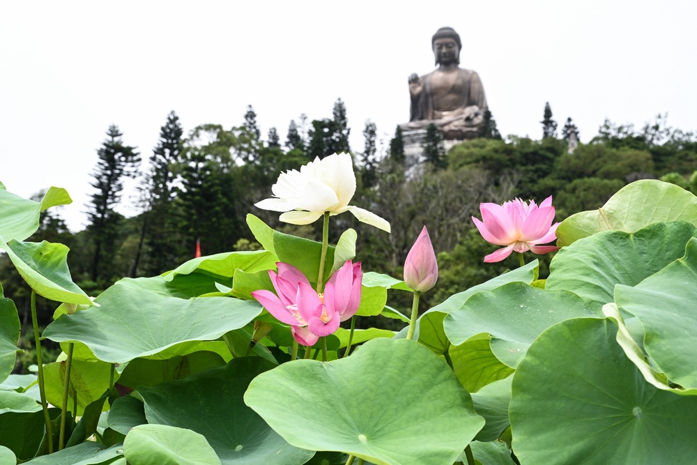 The 2023 Hong Kong Lotus Festival, organized by Po Lin Monastery, Sing Tao News Corp and Institute of Horticulture (HK), finally opened today (Fri) as the exhibition features 400 varieties and 4,000 pots of lotuses and water lilies, and has plants beautifully arranged around the monastery, the Big Buddha and the Di Tan.