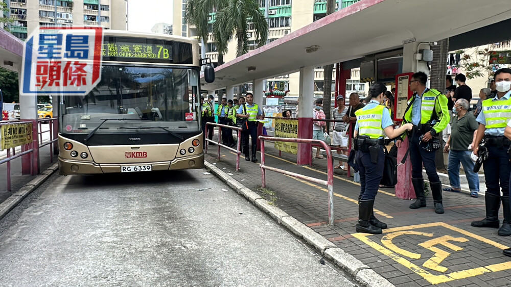 At 1.09 pm today, a woman was struck by a Route 7B single-deck bus at the Oi Man Estate Bus Terminus and was trapped under the wheels.