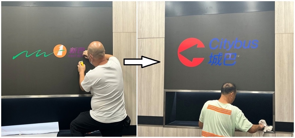 The bus company said on Friday that the New World First Bus (NWFB) logos on existing facilities are being replaced with the new Citybus logo, while NWFB drivers will wear tags bearing the new logo until they get new uniforms.