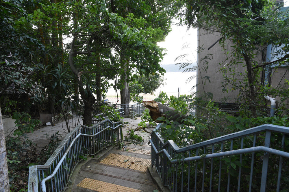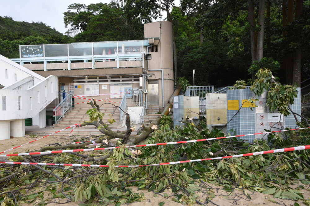 At around 4 pm, police received a report that a woman was struck by a 20-meter-tall tree that suddenly fell on South Bay Road, Repulse Bay.
