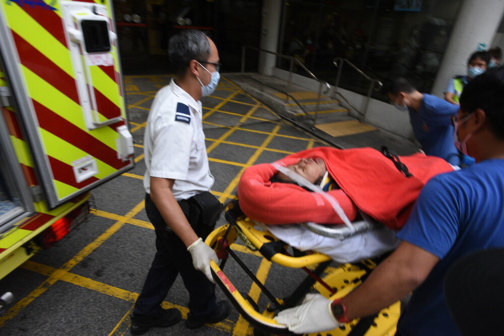 She suffered a head injury and lying on the ground unresponsive. The paramedics conducted emergency first aid, and she regained consciousness before being taken to the Queen Mary Hospital.