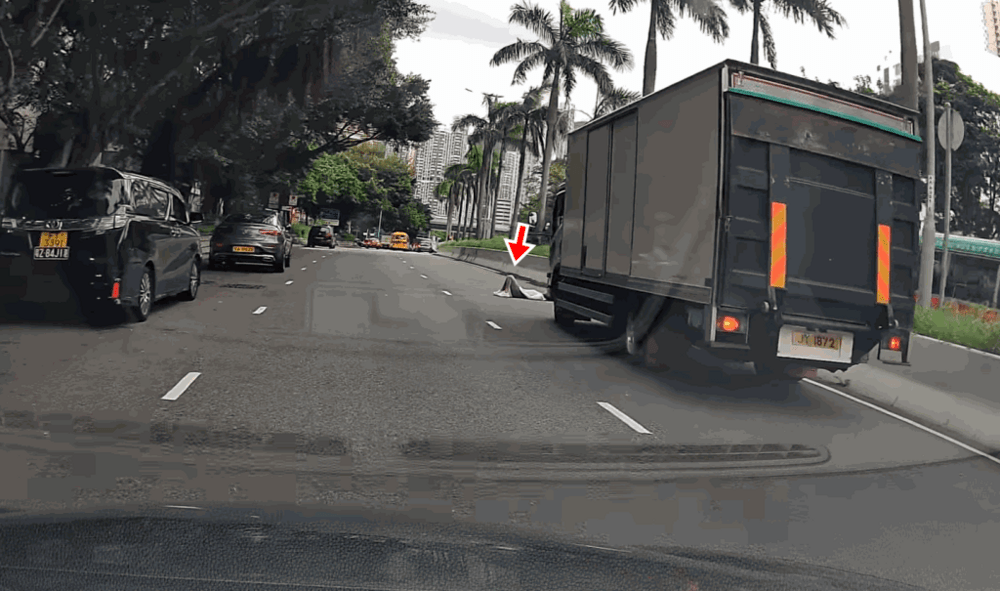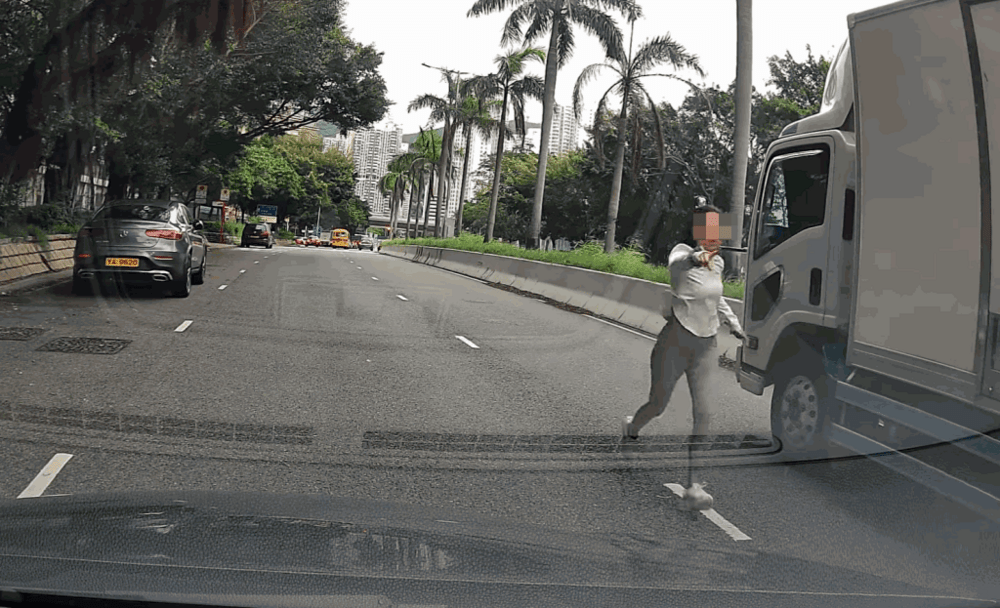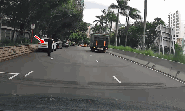 The 25-second-long video was recorded at 5 pm yesterday (Jul 19). A sedan was driving via Hing Wa Street, approaching Tsung Tsin Christian Academy, when a man was seen standing near the road and taking video with his phone.