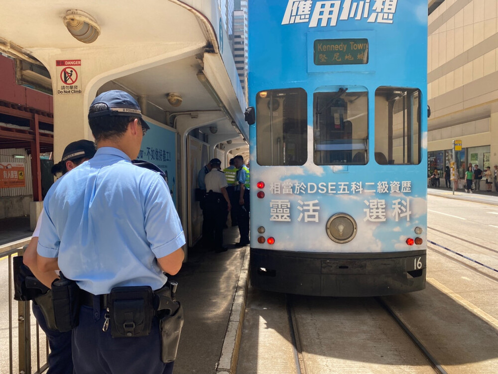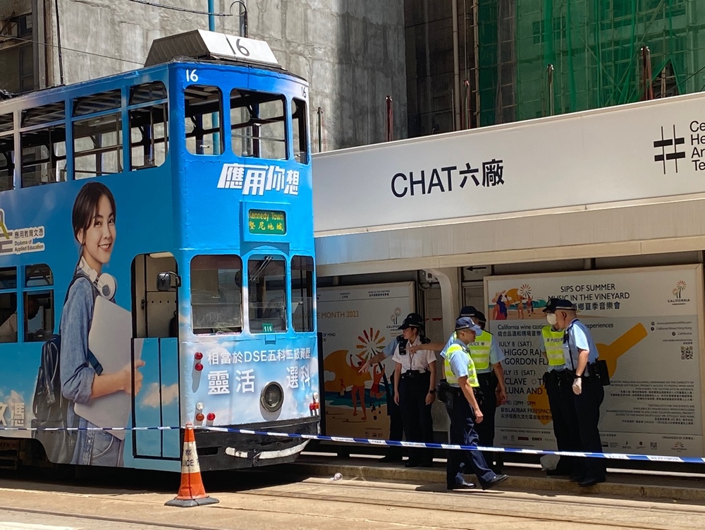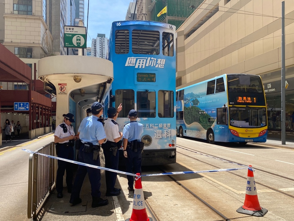 The incident occurred around 1 pm today when the Sai Wan-bound tram was traveling along Des Voeux Road Central opposite Infinitus Plaza.