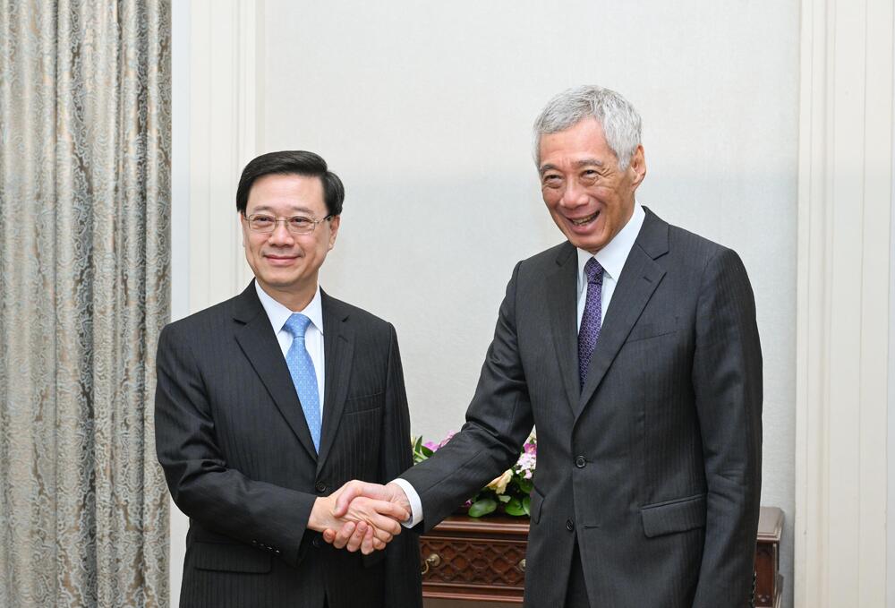 Chief Executive John Lee Ka-chiu met with Singapore's Prime Minister Lee Hsien Loong on Monday, during his 7-day visit to the three ASEAN countries, and thanked him for backing Hong Kong's admission to the regional trade pact.