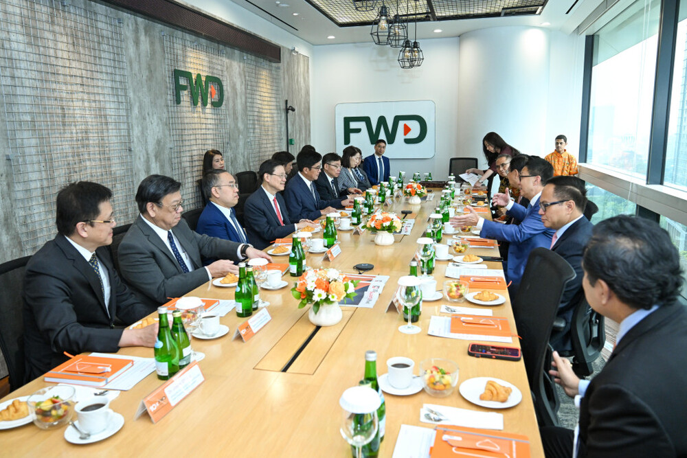 Lee and the delegation visited the Jakarta office of the FWD Group, a multinational insurance company based in Hong Kong, this morning accompanied with Pacific Century Group chairman Richard Li Tzar-kai and FWD Group chairman Frederick Ma Si-hang.