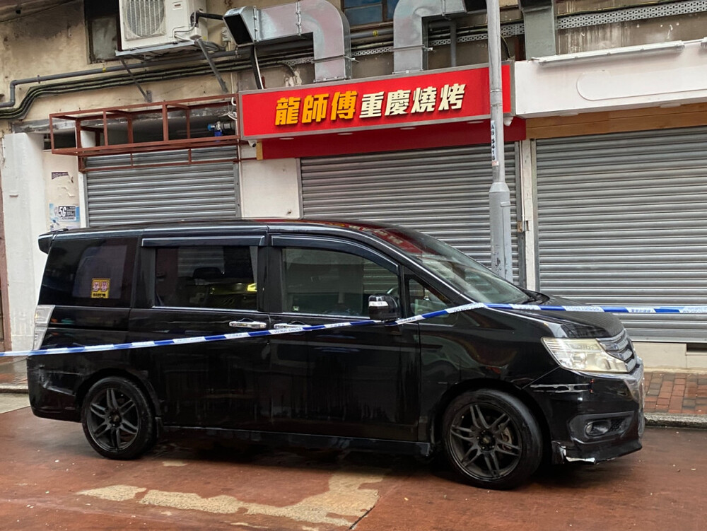 Concrete again fell off two buildings in Mong Kok and Yau Ma Tei on Saturday morning, with a black seven-seater being damaged by the falling concrete, but no injuries were reported.