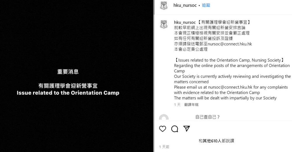 The news came after an anonymous Instagram post alleged that a first-year female student was indecently assaulted at a three-day camp in Yuen Long’s Tai Tong Holiday Camp, and that other participants were also assaulted by their seniors.